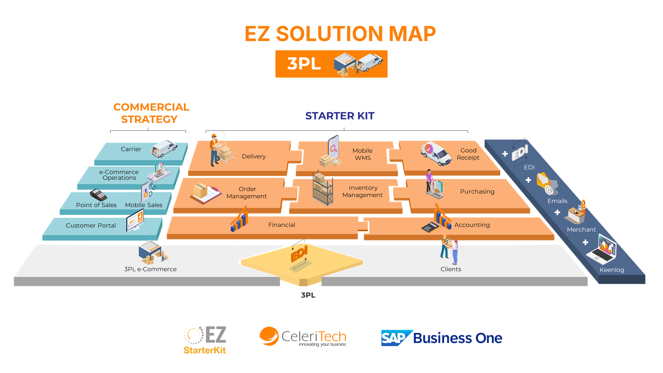 CeleriTech’s digital framework for logistics supply chain and financial management offers affordable order management, quality tracking, visibility and more, all at your fingertips. EZ Starter Kit is here to take care of all your 3PL-related demands through a comprehensive cloud-based service, including simulated reporting, expiration date tracking, inventory management, reliability and full traceability. Add our EZ StockPro and you have the most complete mobile Warehouse Management System on the market that is easy to adopt and will streamline your logistics process.