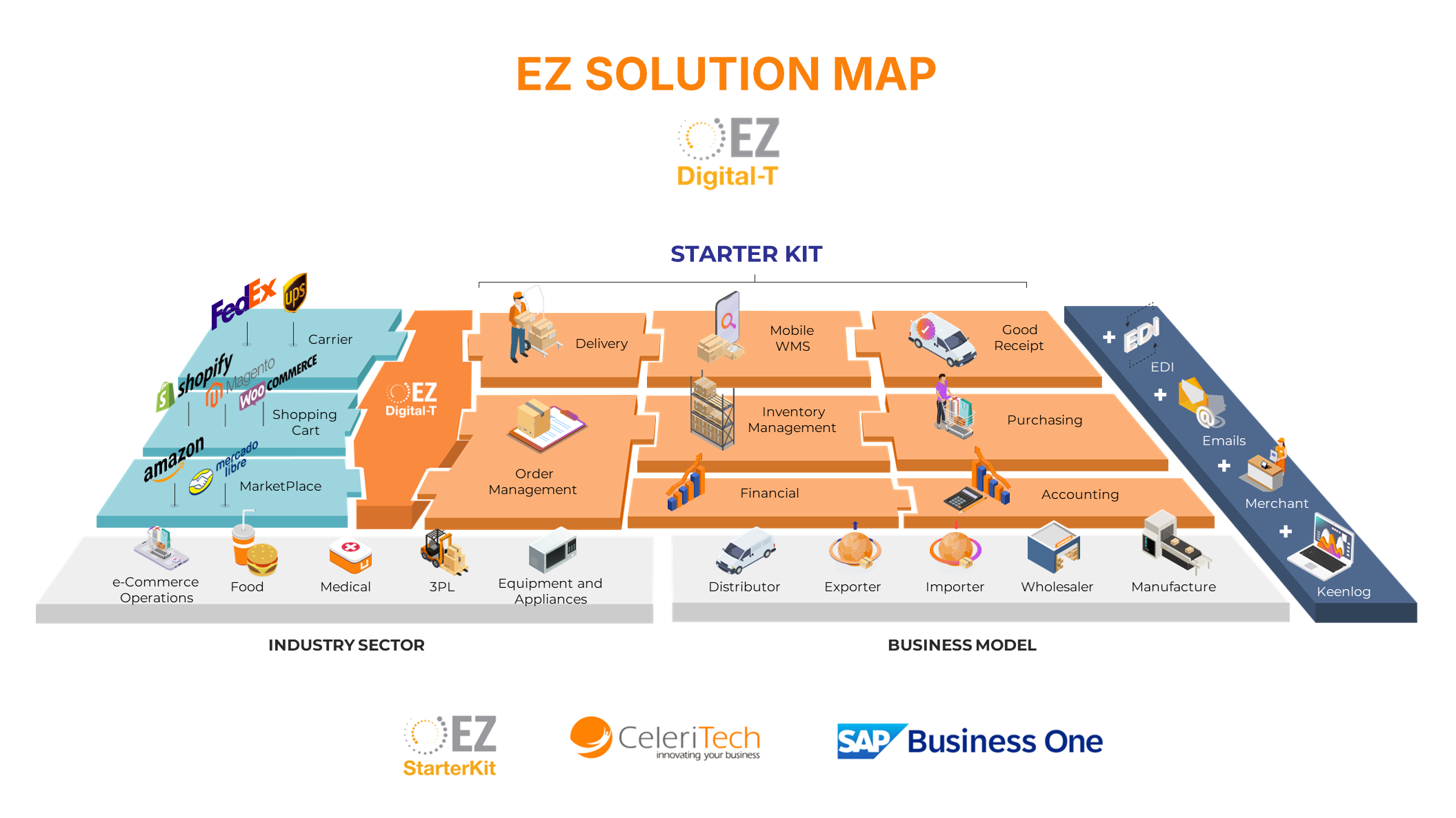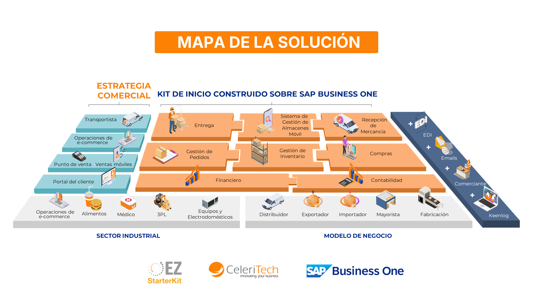 Nuestras soluciones empresariales se basan en SAP Business One, líder probado en gestión financiera y de la cadena de suministro. Al complementar su plataforma SAP Business One con EZ Starter Kit, ampliará y maximizará su inversión.