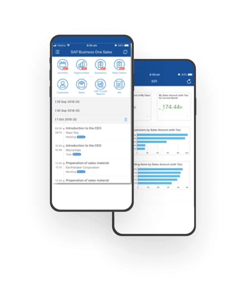 CeleriTech’s Mobile Sales app turns your SAP Business One into an easy-to-use, feature-rich smartphone app. By adding the power of SAP Business One to your phone, you can take advantage of its functionality from anywhere.